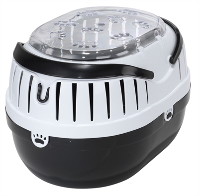 De Ebi Reismand Paw Charcoal Zwart 35X25X25 cm is een handige transportbox voor het vervoeren van bijvoorbeeld knaagdieren als zij een bezoek moeten brengen aan de dierenarts. De reismand, ook wel transportbox genoemd, heeft een transparante deksel met ventilatiegaten in de vorm van pootjes. De box heeft hengsels waarmee je de box gemakkelijk kunt dragen.