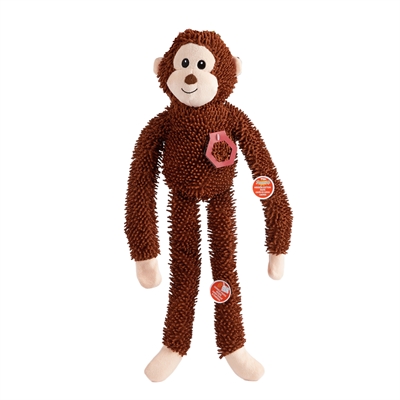 De Fofos Slingeraap is een stoer en speels hondenspeeltje die honden uitnodigt om te kauwen en te ontdekken. Dankzij de lange armen en benen kunnen honden er heerlijk mee schudden, slepen en apporteren. Het knisperpapier en het touw binnenin zorgen voor extra variatie en speelplezier.