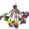 Papegaai Fiesta 31 cm is leuk speelgoed voor de papegaai gemaakt van touw en hout in leuke kleurtjes, perfect om aan te knagen en om lekker te slopen. Dat is voor de meeste vogels immers het leukste tijdverdrijf! Het speelgoed bestaat uit touw met verschillende houten blokken, allemaal opgevrolijkt met niet-giftige verf. De kleuren en structuren prikkelen de zintuigen van de vogel en voorkomen dat jouw dier zich verveelt. Jouw vogel kan er aan knabbelen, het touw uitpluizen en lekker in de touwen klimmen. Zo voorkom je ongewenst gedrag zoals verenplukken en schreeuwen.