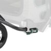 De dissel kan aan de zijkant van de kar opgeborgen worden wanneer de kar niet aan een fiets vastzit. Hierdoor kan de kar eenvoudig omgebouwd worden van kar naar buggy met de uitbreidingsset. Het handvat is in hoogte verstelbaar.