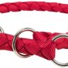 De Trixie Halsband Hond Cavo Halfslip Halsband Zwart 52 – 60 x 1,8 cm is een anti-trek halsband van rond gevlochten singelband, met extra ring om de penning of looplijn aan te bevestigen. Deze rond gevlochten halfslip halsband voor de hond trekt strak wanneer er veel druk op komt te staan, zoals bij veel trekken. Aan de ring kun je de looplijn of bijvoorbeeld een penning bevestigen.