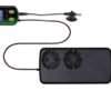 - met elk een door sensor aangestuurde aansluiting voor de temperatuur en de luchtvochtigheid alsook een aansluiting met tijdschakelaar