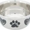 De Trixie RVS Print Schets 13 cm 500 ml is een moderne dubbele voerbak met leuke print voor de hond met binnenzijde van glad RVS en rubberen ring om schuiven te voorkomen. Door de gladde binnenkant van RVS zijn de voerbakken geschikt voor zowel droogvoer, natvoer als water en gemakkelijk te reinigen. De buitenkant is voorzien van een leuke, gepoedercoate print met hartjes en pootafdrukjes. De slipvaste ring aan de onderkant voorkomt dat de bak tijdens het eten verschuift.